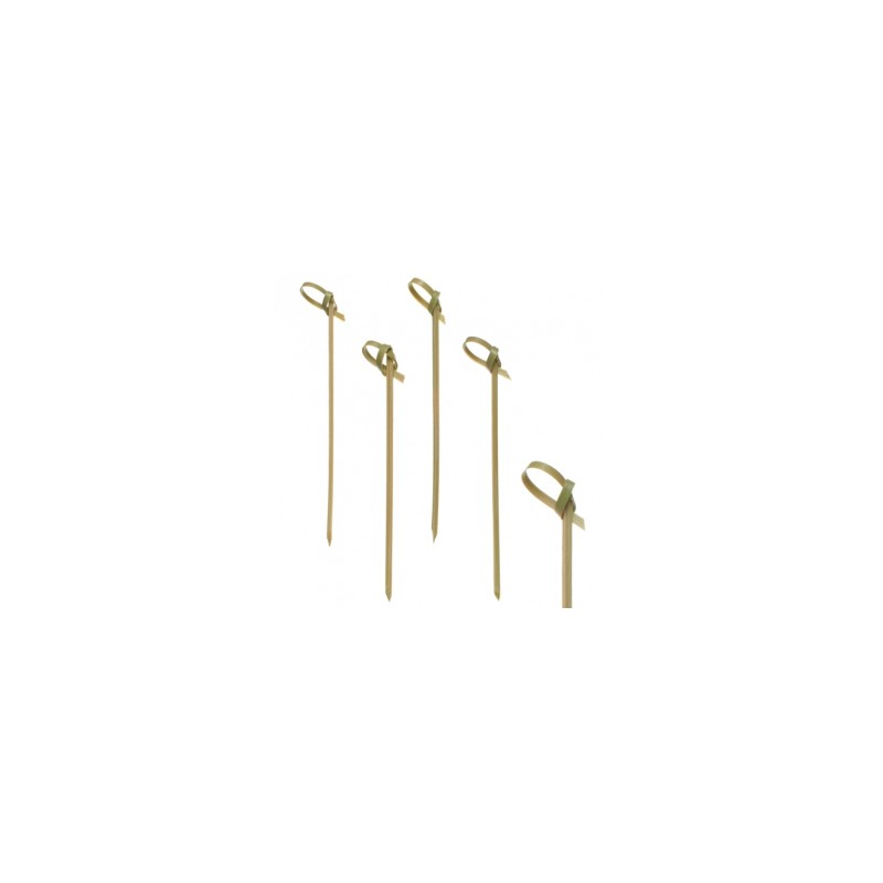 Patyczki FINGERFOOD KNOT 10 cm to eleganckie i praktyczne wykałaczki wykonane z naturalnego bambusa. Charakteryzują się ozdobnym zakończeniem w formie supełka (knota), które dodaje potrawom atrakcyjnego, profesjonalnego wyglądu. Są idealne do serwowania finger foodów, mini burgerów, kanapek, koreczków, owoców i przystawek.