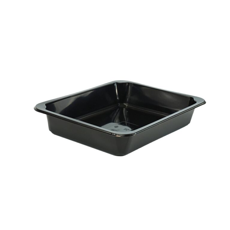 Profesjonalny, dwudzielny pojemnik jednorazowy COLT w kolorze czarnym o wymiarach 227 x 178 mm i wysokości ok. 30 mm (H3). Dzięki przegrodzie wewnętrznej umożliwia oddzielenie dwóch składników dania – idealne rozwiązanie do serwowania zestawów obiadowych, np. mięsa i dodatków lub dań głównych i sałatek.