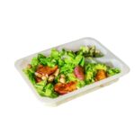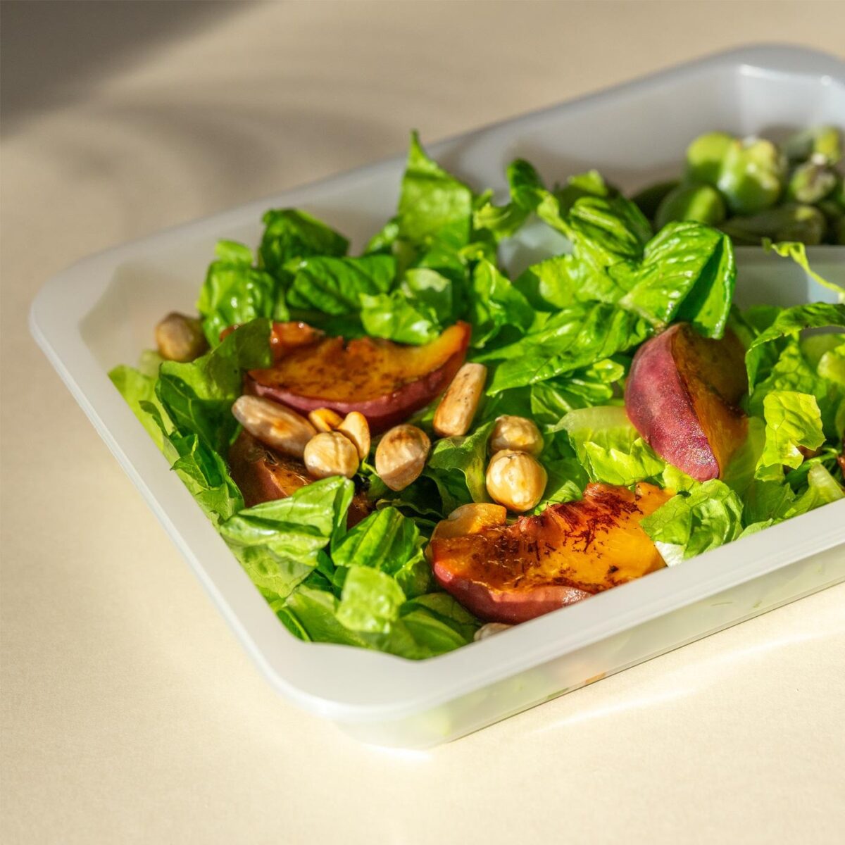 Dwukomorowa konstrukcja świetnie sprawdza się w zestawach lunchowych (np. mięso + dodatki)