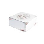 Pudełko cukiernicze 28 × 28 × 13 cm, białe z eleganckim nadrukiem „Patyna”, pakowane po 50 szt. – to duże, dekoracyjne opakowanie do tortów, ciast i deserów. Dzięki ozdobnemu wzorowi sprawdza się zarówno w codziennym użytkowaniu w cukierniach, jak i podczas uroczystości okolicznościowych.