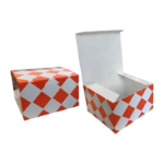 Pudełko papierowe w czerwony wzór kratki to uniwersalne i estetyczne opakowanie do serwowania burgerów, kurczaka, nuggetsów, frytek oraz innych dań typu fast food. Wykonane z mocnego kartonu, odpornego na tłuszcz i wilgoć, doskonale sprawdza się zarówno w lokalu, jak i w sprzedaży na wynos.