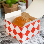 Estetyczny nadruk w czerwonej kratce – przyciąga wzrok i podkreśla charakter street food